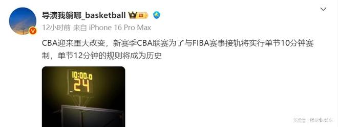 众所周知,在过去这些年,CBA一直与NBA联赛接轨,采取的是48分钟赛制,即每节12分钟赛制。不过,在国际篮联比赛中,他们采取的是40分钟赛制,即每节10分钟赛制。在过去几年里,关于CBA联赛与国际篮联比赛接轨的说辞,一直是不绝于耳。不过,对于CBA联赛与国际篮联接轨,坊间其实存在两种说法。支持者认为,这样CBA联赛可以与国际篮联接轨,利用本土球员的成长。不过,也有反对者表示,这样国内球员锻炼的机会就更少了。