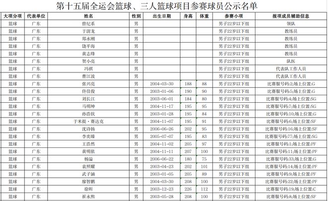雷速体育10月14日讯 中国篮球协会今天公示第十五届全国运动会篮球项目决赛阶段球员名单,崔永熙、徐昕将代表广东队参加22岁以下组比赛。