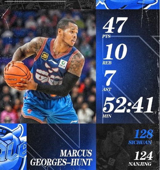在上赛季效力四川男篮时,亨特代表球队出战43场常规赛,场均能够得到21.1分5.8板5助1.3断,具备极为不俗的攻传实力,尤其是有过单场47+10+7的表现。