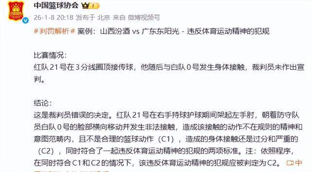 1月8日晚上,中国篮协官方发布通告,正式确认广东与山西一战中裁判存在四次重大误判。然而,篮协承认错了也白搭,漏判了山西队2次违体犯规,结果是不能更改的,广东队只能吃个哑巴亏了。