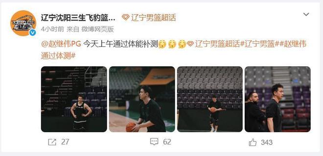根据辽宁队俱乐部媒体的消息,今天上午赵继伟正式通过了CBA体测,最早将会在1月13日晚上主场对阵青岛队的比赛中复出。因为腿伤赵继伟缺席了本赛季常规赛前13轮比赛,目前辽宁队的战绩为7胜6负排名联赛第10,赵继伟复出后辽宁队的实力将会大幅度提升,排名也会进一步的提升。