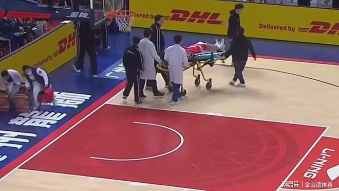后者顿时失去平衡摔出底线,头部重重地撞到广告板,随后担架紧急进场,送往当医院救治。