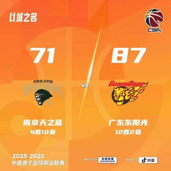 末节决战,郭昊文三分手起刀落,胡明轩突破再打2+1。郭昊文、陈家政对飙三分,马内克两罚中一,萨林杰借掩护下顺劈扣。球队暂停回来,郭昊文远投再度开火,,赵柏清弧顶强势3+1打成将分差缩小至个位数。萨林杰、萨姆纳先后登场,在进攻端接连打进,胡明轩再度三分命中,郭昊文内线搏得犯规两罚中一。王少杰禁区吃饼,杜润旺三分再中。赵柏清、刘奕杭接连命中两罚。全场比赛结束,南京天之蓝71-87广东东阳光。