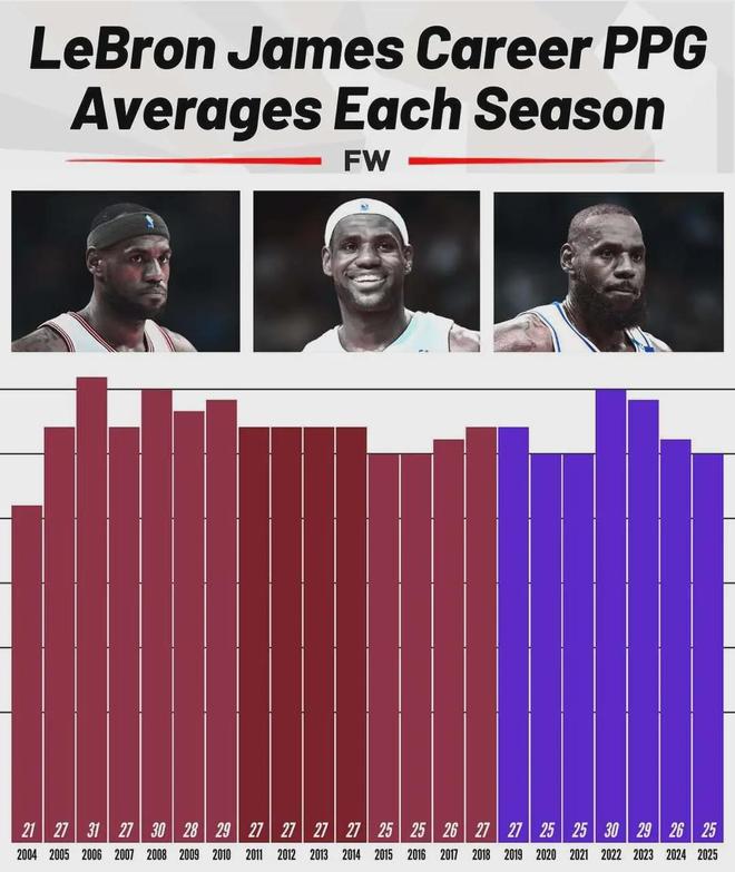 目前联盟只有两个球员超过40岁:詹姆斯和保罗。此外,还有四人超过39岁:洛瑞、坦普尔、霍福德和杰夫-格林。NBA官方写道:“詹姆斯不仅是现役最年长的球员,目前联盟当中有70名球员,是在詹姆斯NBA首秀之后出生的。”