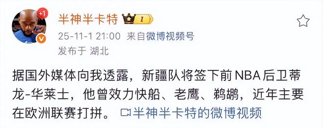 在CBA联赛的这个休赛期里,新疆男篮的调整还是比较大的:在教练组方面,球队围绕刘炜组建了新的团队,包括前CBA神射手罗智等多名国内外教练加盟;在球员方面,赵睿通过转会离队,球队补强了王薪凯,并上调了冯傲、张庆泽、殷召航等三名年轻球员进入到一队,其中冯傲的潜力非常大,是刘炜的重点培养目标;在外援方面,新疆男篮只留下了上个赛季的一名外援劳森,并签下了小外援纳托尔和锋线外援路易斯-金。就在日前,新疆男篮确定了第四名外援,据媒体人“半神半卡特”透露,新疆男篮将签下前NBA后卫蒂龙-华莱士,球队将会以四外援的阵容迎接新赛季。