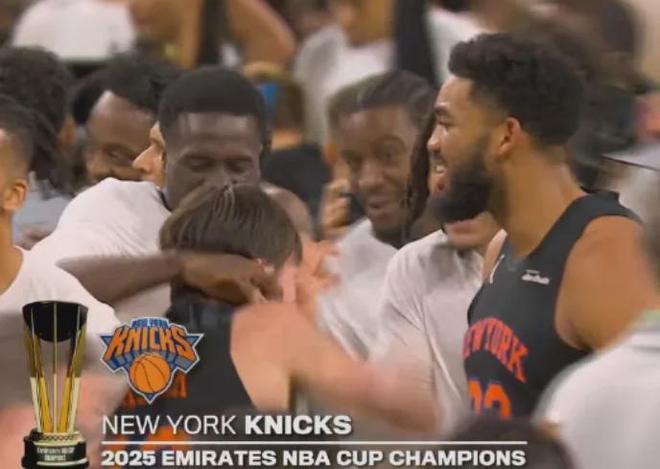 布伦森末节稳定控球,把时间耗尽,尼克斯最终是以124比113击败了马刺,拿到了本届NBA杯赛的冠军。