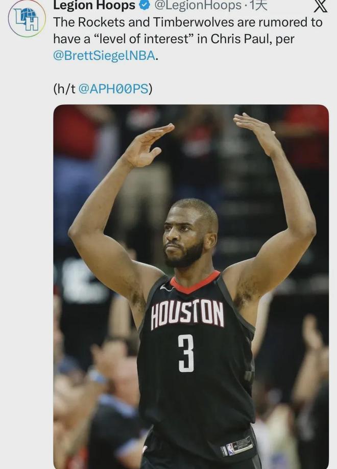 据美媒报道,火箭和森林狼等队均有意接受保罗。