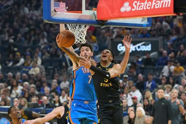 北京时间1月3日,NBA常规赛继续展开,勇士主场对阵雷霆。本场比赛勇士战术性调整,库里、巴特勒、格林等人缺席,上来也是早早陷入被动,雷霆将分差拉开到两位数,随后勇士打出一波13-4攻势迫近比分,可雷霆直接回敬一波19-0攻势将分差再次拉开,勇士之后也是无法做出回应,半场45-64落后雷霆。