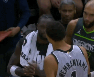 有一个镜头特别有意思,戈贝尔坐在场下看着兰德尔防文班,兰德尔的视线和戈贝尔对上了,仿佛在说:“瞧好了,怎么防这小子,我只教你一次。”