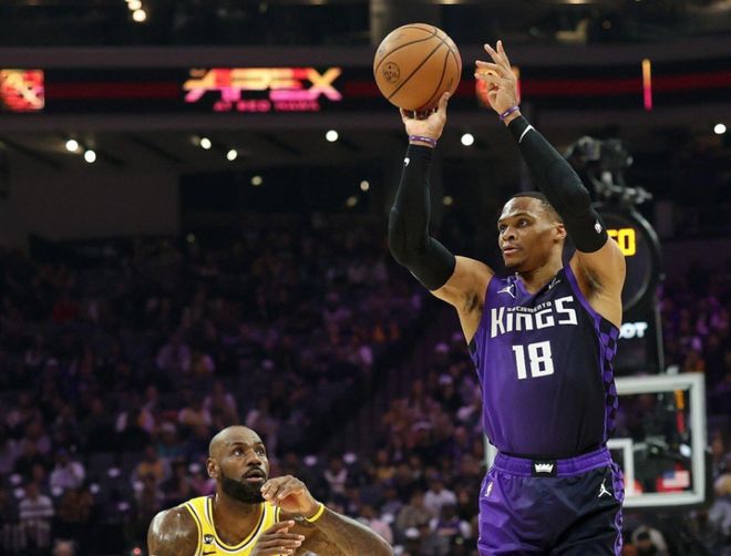 回顾一下比赛,开场老詹暴扣+上篮连续拿分,东契奇反击打停国王。暂停回来威少跳投,老詹弹无虚发,东契奇连续单打帮湖人守住领先优势。德罗赞和威少在中段开始发力,东契奇回应三分球,但后半段风云突变:威少喂饼阿丘瓦上篮,喂饼埃利斯轰三分,德罗赞造杀伤,拉文内突外投反超,第一节打完,湖人28-32国王。湖人替补进攻完全哑火,攻防都没有保障。进入第二节,蒙克突然下起三分雨拉开分差,艾顿吃饼,东契奇单打威少,蒙克续上三分球!中段东契奇又开始闷头往内线冲,蒙克和威少下三分雨回应。