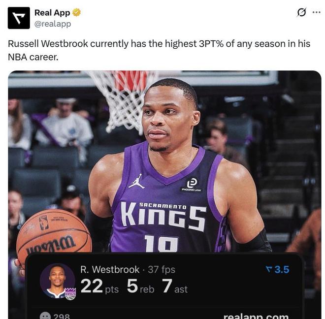 37岁的威少之所以在三分投射方面做出调整与改变,一方面是因为顺应小球时代,另外一方面也是从超级巨星迅速沦为边缘球员角色定位大改后的无奈之举。