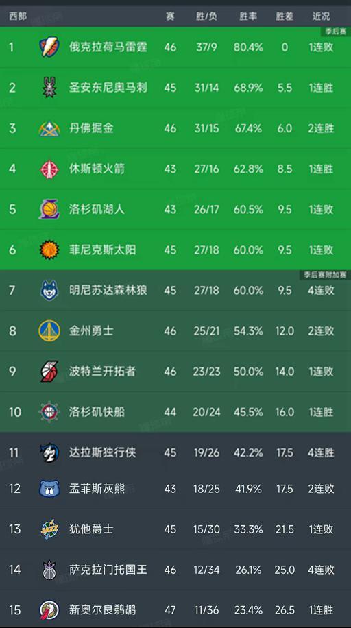 北京时间1月24日,今日的NBA常规赛结束了所有比赛,我们看看西部最新积分榜变动!