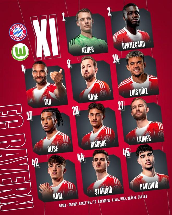 北京时间1月12日凌晨00:30,拜仁将迎来德甲第16轮主场对阵沃尔夫斯堡的比赛,目前,双方的首发阵容和替补名单已经公布,随后拜仁官方公布了球队的伤情信息。