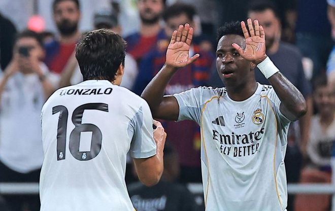 下半场易边再战。第55分钟,维尼修斯内切兜射,被扑出。第64分钟,罗德里戈在禁区内低射远角,门将把球扑住。6分钟后,亚马尔在禁区中路包抄铲射,门将把球扑出。第73分钟,巴萨再次进球。拉菲尼亚横向盘带后起脚射门,皮球被挡了一下折射入网。