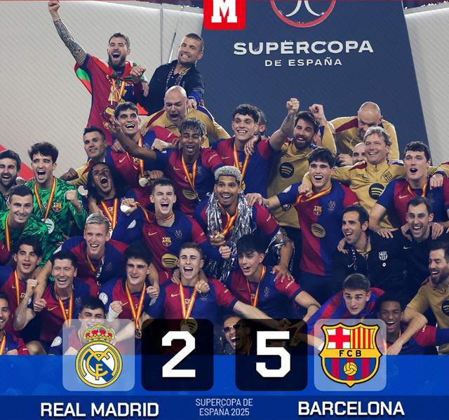 来到巴萨之后,弗里克延续“决赛100%胜率”的纪录。2025年西超杯决赛,巴萨和皇马大打对攻战,亚马尔、莱万、拉菲尼亚(2球)、巴尔德破门,巴萨5-2大胜夺冠。
