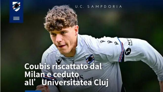 据官方消息,米兰中卫安德烈·库比斯转会至桑普多利亚,并被外租至克卢日。