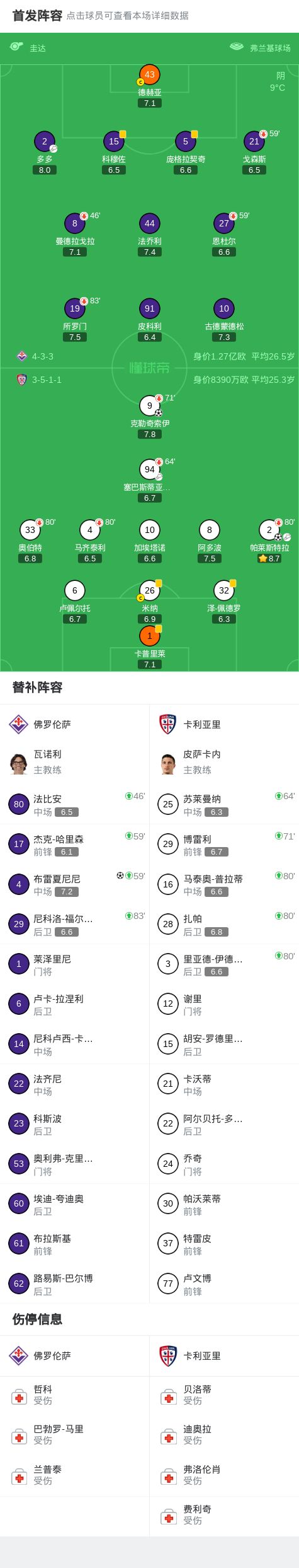 第31分钟,先拔头筹,克勒奇索伊头球破门,卡利亚里1-0