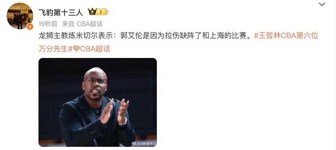 首先第消息,分享一下郭艾伦复出又拉伤的情况。最近广州队迎来了对战强队上海队的比赛,郭艾伦在赛前还和张镇麟他们打了招呼,结果在比赛开始之后却没有登场。最终广州队是大比分输给了上海队,遭遇溃败。